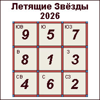 В каждом из 9-ти секторов 2 цифры . Большая цифра - это годовая летящая звезда, а маленькая цифра - летящая звезда месяца.